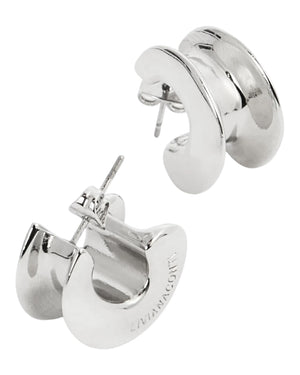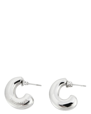 Μικρά μεταλλικά σκουλαρίκια κρίκοι σε ασημί χρώμα.