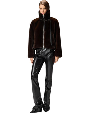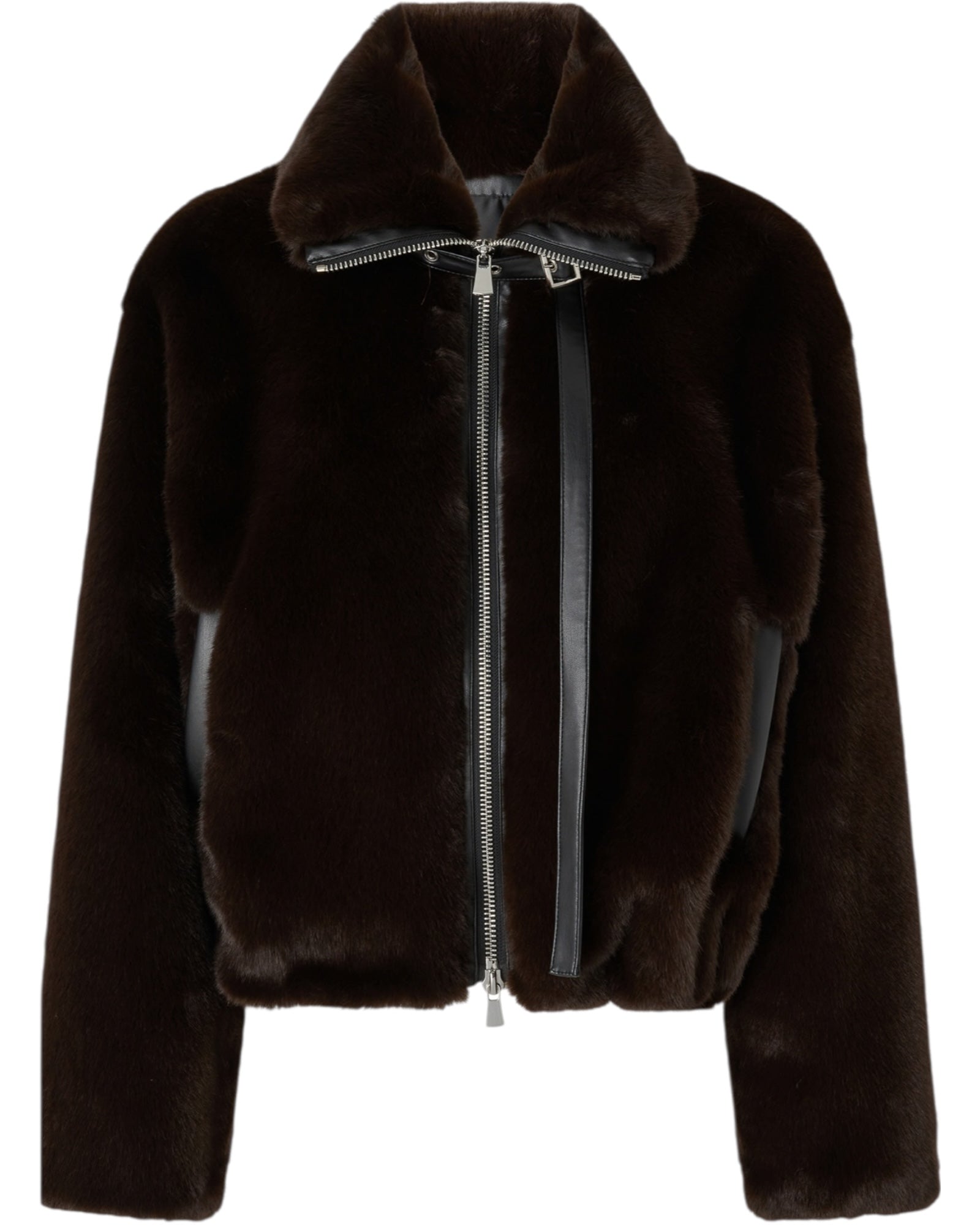 Κοντό μπουφάν  από ύφασμα Aspen με γούνα, με φερμουάρ σε όλο το μήκος, απαλό ψηλό γιακά και σούρες στο τελείωμα. Το ύφασμα με δερμάτινη επένδυση που κρέμεται στις τσέπες, το κλείσιμο και το λουράκι με μικρή αγκράφα δίνουν στο κομμάτι την τέλεια πινελιά μοτοσικλετιστή για την κρύα εποχή. Νιώστε τολμηροί και δώστε στις casual εμφανίσεις σας μια ροκ εν ρολ πινελιά.