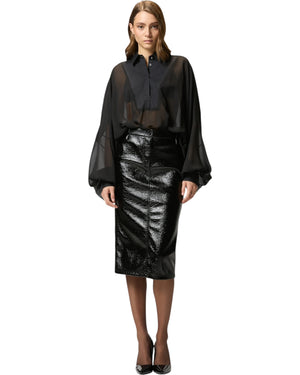 Midi φούστα με γυαλιστερή όψη και ζώνη RAIMUNDA