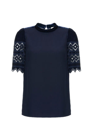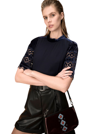 Μπλούζα βελούδινη με δαντέλα στα μανίκια BOTTIGLIA