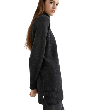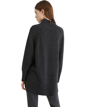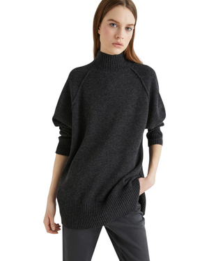 Ένα πραγματικό κομμάτι γκαρνταρόμπας που πρέπει να φοριέται ξανά και ξανά: αυτό το πουλόβερ από μάλλινο ύφασμα με ψηλή λαιμόκοψη διαθέτει ένα απαραίτητο κόψιμο και μια μοντέρνα λεπτομέρεια στο πλάι. Δοκιμάστε το με φουσκωτές φούστες μέχρι τη γάμπα για μια εξαιρετικά θηλυκή εμφάνιση πόλης.