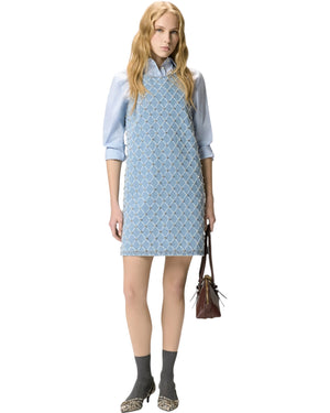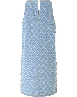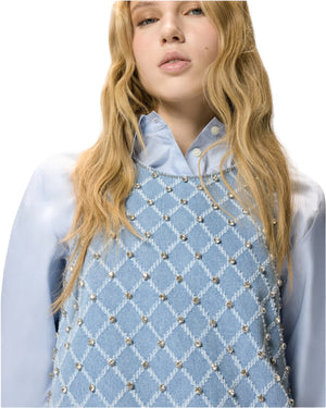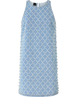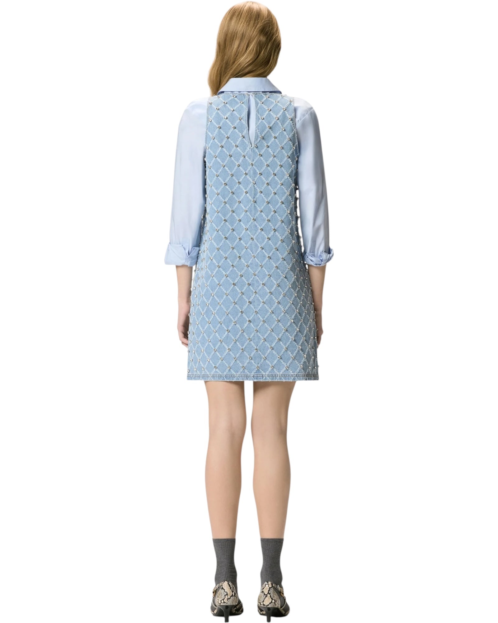 Κοντό τζιν φόρεμα με μοτίβο διαμαντιών και στρας AMORINO