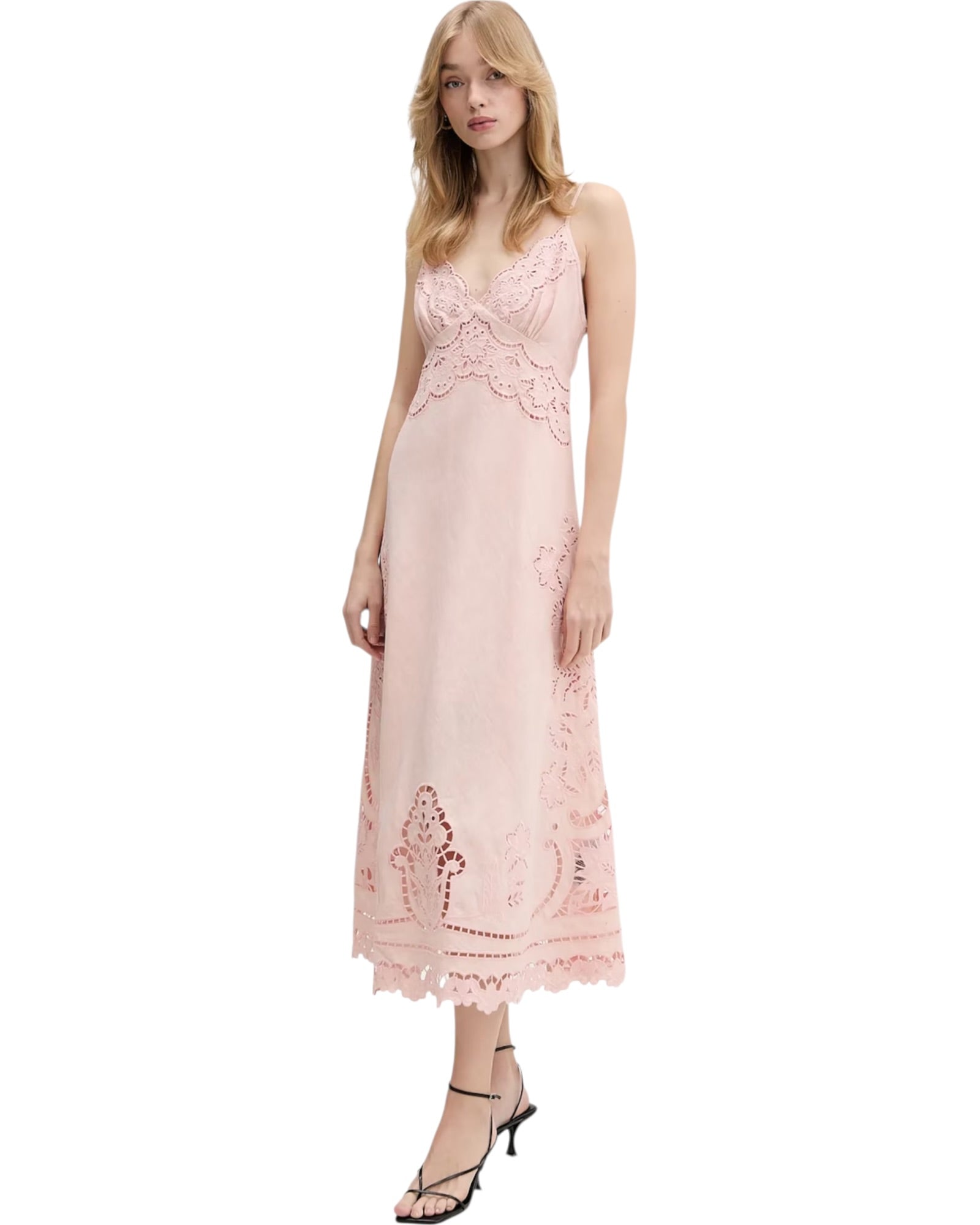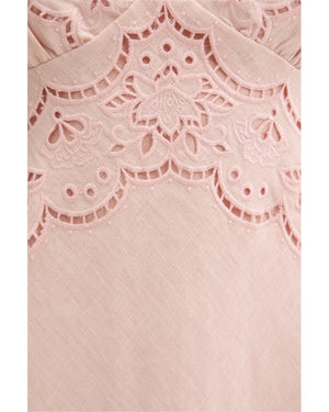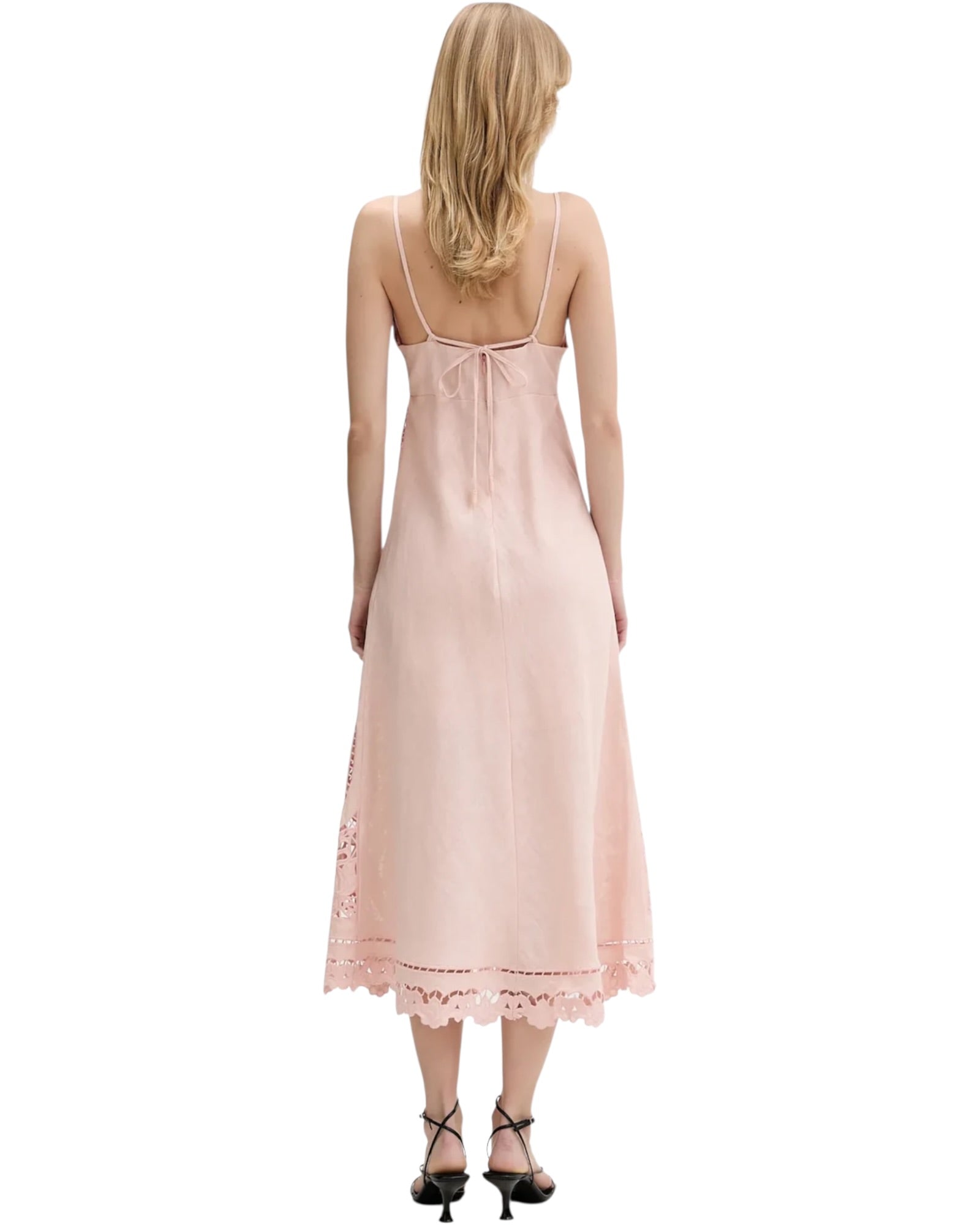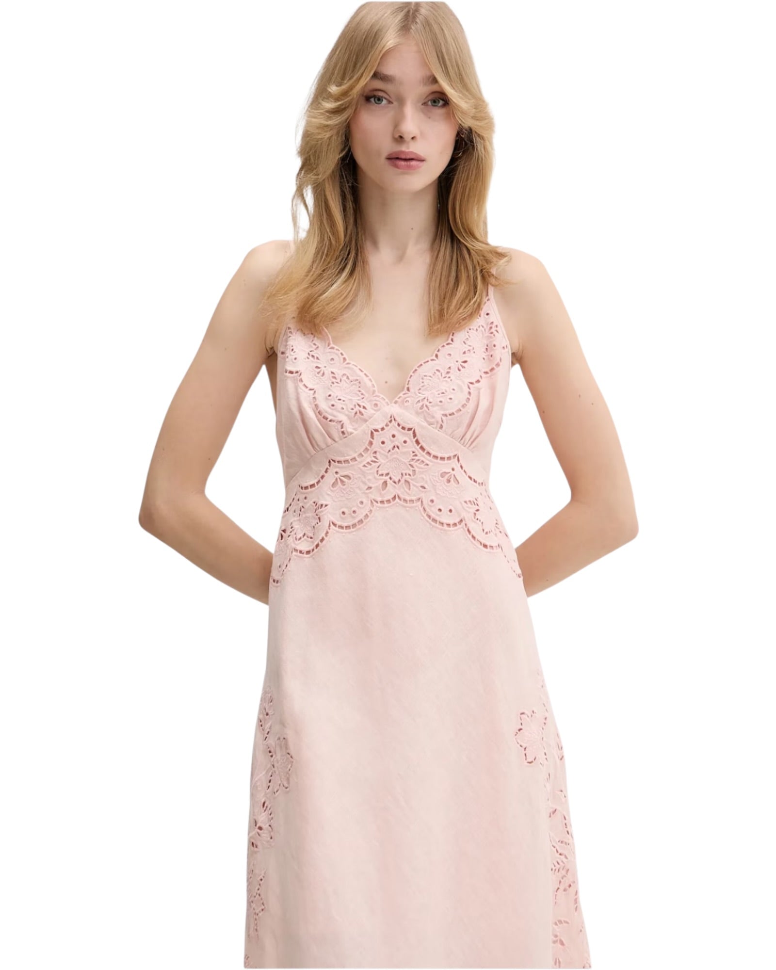 Λινό φόρεμα με κεντήματα RICHELIEU SLIP MIDI
