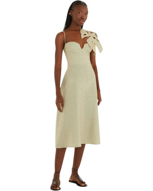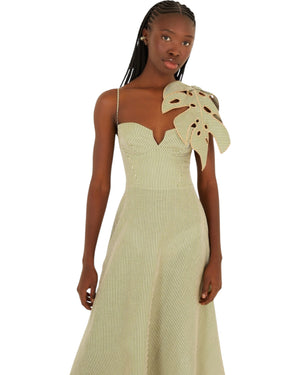 Ριγέ φόρεμα midi λινό STRIPED MONSTERA LEAF