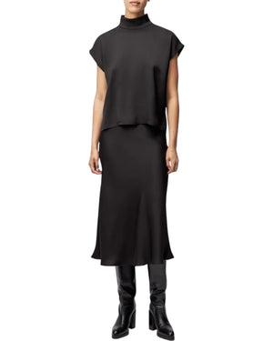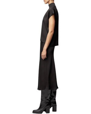Η ALARIA_1 είναι μια μπλούζα πουκάμισο σε χαλαρή γραμμή με γραμμή Α. Η μπλούζα έχει κοντά, φαρδιά μανίκια, όρθιο γιακά και κούμπωμα με κουμπιά. Κατασκευασμένη από υψηλής ποιότητας, φαρδύ σατέν.