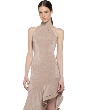 Μακρύ φόρεμα από τη συλλογή Simona Corsellini από lurex jersey, λαιμόκοψη με τιράντες