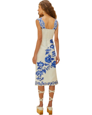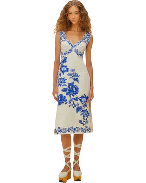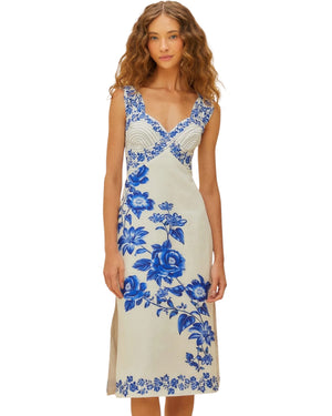 Εκρού φλοράλ μίντι φόρεμα CASCADE