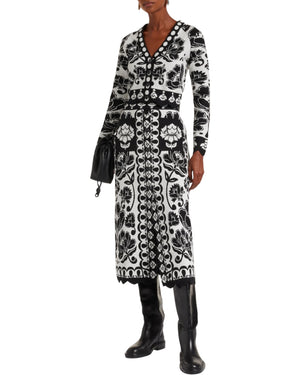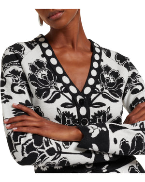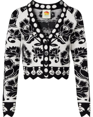 Πλεκτή από απαλά νήματα, αυτή η ζακέτα Farm Rio διαθέτει ελαφρώς κοντή σιλουέτα, κυματιστά τελειώματα και ζακάρ απόδοση του Floral Arabesque μοτίβου τους.