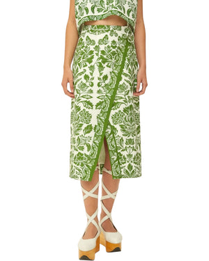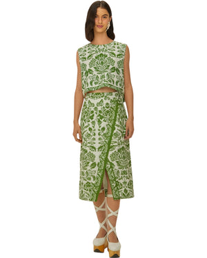 Μπείτε σε έναν κόσμο πλούσιας κομψότητας με τη Midi φούστα Green Delicate Tapestry LENZING™ ECOVERO™ Euroflax™. Αυτό το μαγευτικό κομμάτι διαθέτει ένα ζωντανό πράσινο βοτανικό μοτίβο συνυφασμένο με τη χαριτωμένη σιλουέτα του, που τονίζεται τέλεια από μια γοητευτική πλάγια σχισμή που προσθέτει μια παιχνιδιάρικη πινελιά. Φτιαγμένη από υπεύθυνα υλικά, αυτή η φούστα δεν αγκαλιάζει μόνο το στυλ αλλά και ένα προσεγμένο ήθος, καθιστώντας την ένα απολαυστικό βασικό στοιχείο της γκαρνταρόμπας. LENZING™ ECOVERO™: οι οικολογικά υπεύθυνες ίνες παράγουν έως και 50% χαμηλότερες εκπομπές και επιπτώσεις στο νερό σε σύγκριση με τη γενική βισκόζη.