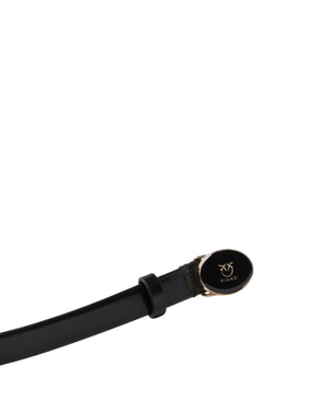 Ζώνη πλάτους 2,8 cm από μαλακό δέρμα. Το ιδιαίτερο χαρακτηριστικό αυτής της ζώνης είναι αναμφίβολα η οβάλ, επισμαλτωμένη αγκράφα σε στυλ πλακέτας με το λογότυπο PINKO και το λογότυπο Love Birds. Το εσωτερικό είναι κατασκευασμένο εν μέρει από υλικό που προέρχεται από αναγεννημένες ίνες δέρματος. Απλό και εκλεπτυσμένο, αυτό το αξεσουάρ είναι το κομμάτι που θα ολοκληρώσει τις καθημερινές σας εμφανίσεις και όχι μόνο.