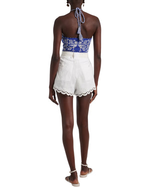 FARM RIO γυναικείο λινό σορτς Richelieu, με κομψό και άνετο σχεδιασμό. Διαθέτει ρυθμιζόμενη ζώνη στη μέση. Τελείωμα με κεντητές λεπτομέρειες στο τελείωμα . Κλείσιμο με κουμπί και φερμουάρ.