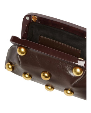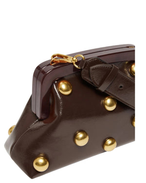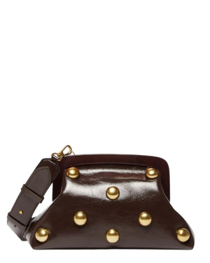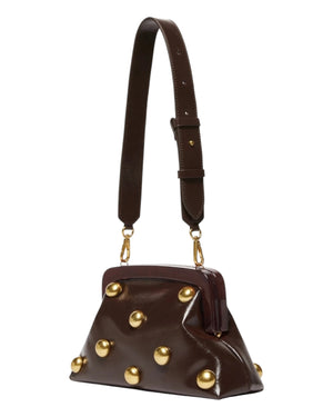 Γεωμετρικές γραμμές εμπνευσμένες από τη δεκαετία του '60 φωτίζονται από λαμπερές χρυσές σφαίρες: είναι σίγουρο ότι θα ερωτευτείτε αυτή τη νέα δερμάτινη τσάντα clutch. Διαθέτει αφαιρούμενο δερμάτινο λουράκι ώμου για χρήση στο χέρι ή στον ώμο.