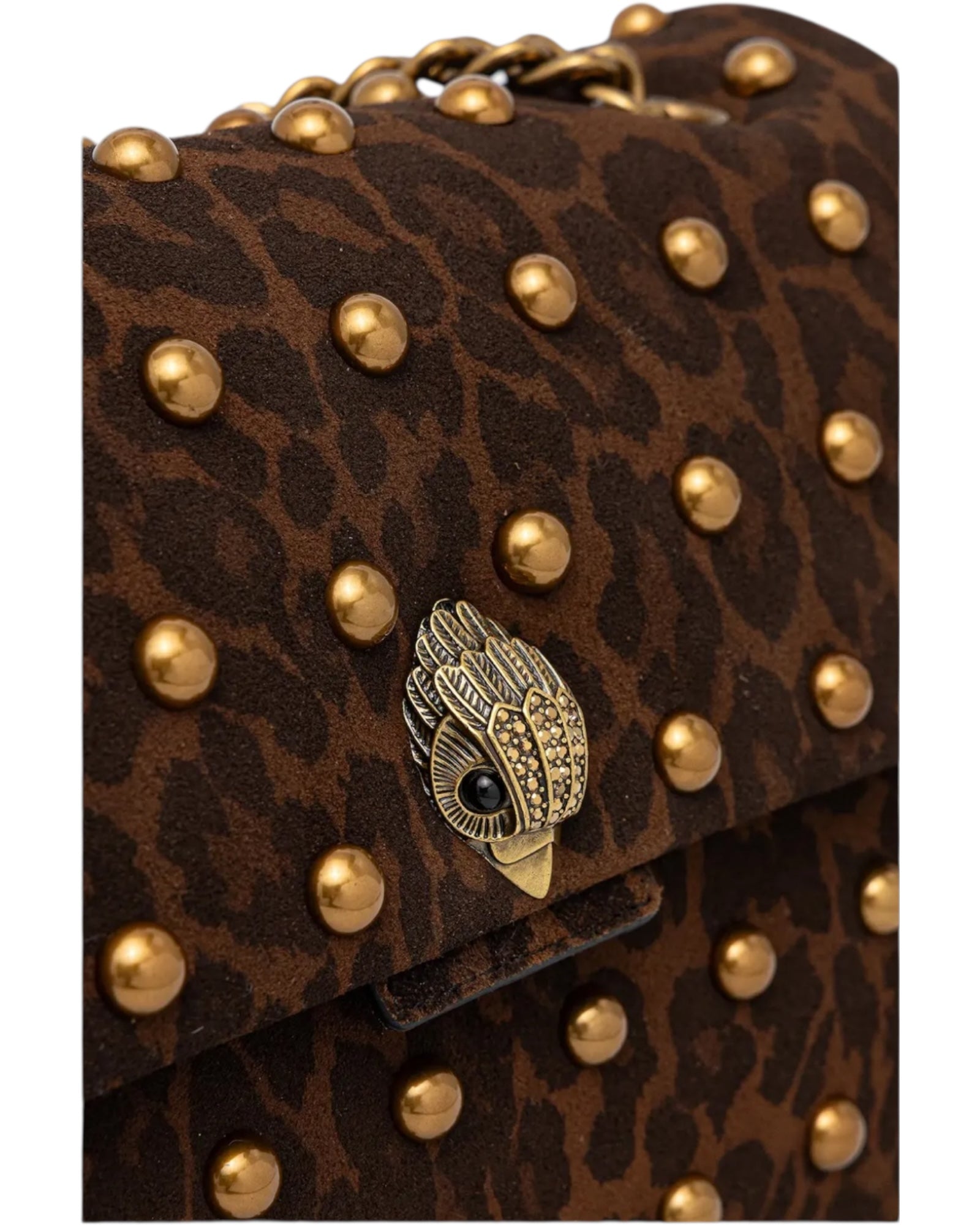 Τσάντα ώμου, απο σκούρο λεοπάρ suede με διακοσμητικά studs στο εξωτερικό και μαλακό δέρμα στο εσωτερικό και με αλυσίδα για κράτημα στον ώμο – Kurt Geiger