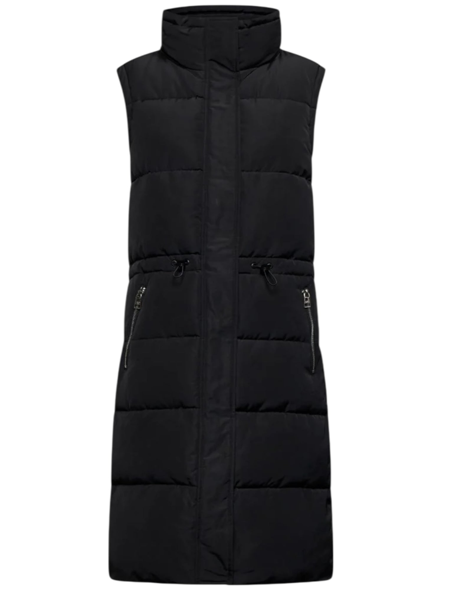 Γιλέκο με επένδυση, εφαρμογή μέχρι τους γοφούς και ζώνη στη μέση. Ένα απαραίτητο κομμάτι πανωφόρου, ιδανικό για μεταβατικές εποχές.