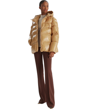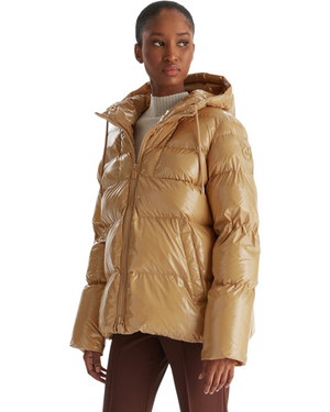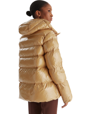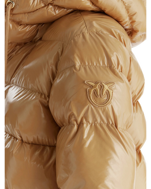 Παλτό με επένδυση από νάιλον ύφασμα με κρυστάλλινο εφέ και ιδιαίτερο γυαλιστερό φινίρισμα, με το λογότυπο Love Birds στο ένα μανίκι. Κουκούλα με μεταλλικό κορδόνι περίσφιξης, μακριά μανίκια και κάθετες τσέπες με ρέλι στα πλάγια. Αυτό το εξωτερικό ένδυμα είναι επενδεδυμένο για μεγαλύτερη άνεση όταν φοριέται. Κλείσιμο με φερμουάρ δύο κατευθύνσεων στο μπροστινό μέρος.