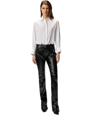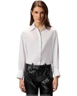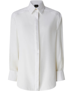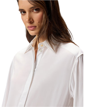 Κλασικό πουκάμισο που ξεχωρίζει για τον συνδυασμό βαμβακερής ποπλίνας με πυκνή υφή στο κύριο μέρος του σώματος και στα μανίκια, και πιο αέρινου κρεπ ντε σιν υφάσματος στο πίσω τμήμα που είναι ελαφρώς σουρωτό. Μυτερός γιακάς, μακριά μανίκια με μανσέτες και κλείσιμο με κουμπιά μπροστά. Συνδυάστε το πουκάμισο με ένα τζιν παντελόνι για να αναβαθμίσετε τις καθημερινές σας εμφανίσεις με ένα θηλυκό και πρωτότυπο ρούχο που δεν περνά απαρατήρητο.