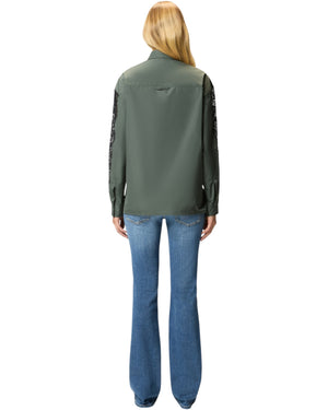 Πουκάμισο από ταφτά με μικροΐνες memory. Η τσαλακωμένη όψη του υφάσματος συνδυάζεται τέλεια με την ένθετη δαντέλα στα μανίκια, δημιουργώντας ένα λεπτό εφέ εσωρούχων, ενώ η τσέπη στο μπροστινό μέρος και η λειτουργική θηλιά στο πίσω μέρος προσδίδουν μια σπορ πινελιά. Συνδυάστε αυτό το πουκάμισο με τζιν για να δώσετε στην καθημερινή σας εμφάνιση μια θηλυκή και πρωτότυπη αναβάθμιση που δεν θα περάσει απαρατήρητη.