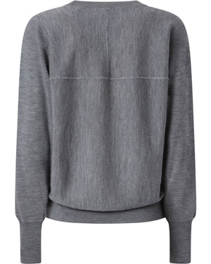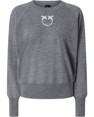 Πουλόβερ με μακριά μανίκια και στρογγυλή λαιμόκοψη από εξαιρετικά ελαφρύ και ευέλικτο καθαρό μαλλί μερινό. Στο μπροστινό μέρος φέρει το εμβληματικό λογότυπο Love Birds με τη μορφή διαφανούς ένθετου με την τεχνική dévoré που εκφράζει πλήρως το DNA της μάρκας. Το πίσω μέρος του ενδύματος, από την άλλη πλευρά, διαθέτει εκτεθειμένη ραφή στο πάνω μέρος που μοιάζει με σχήμα ζυγού. Πλεχτή λαιμόκοψη, στρίφωμα και μανσέτες με ριμπ πλέξη. Το κομμάτι έχει υποβληθεί σε δοκιμές φινιρίσματος για την ελαχιστοποίηση του πιθανού σχηματισμού ριπών, εξασφαλίζοντας μεγαλύτερη απαλότητα και ανθεκτικότητα του υφάσματος.