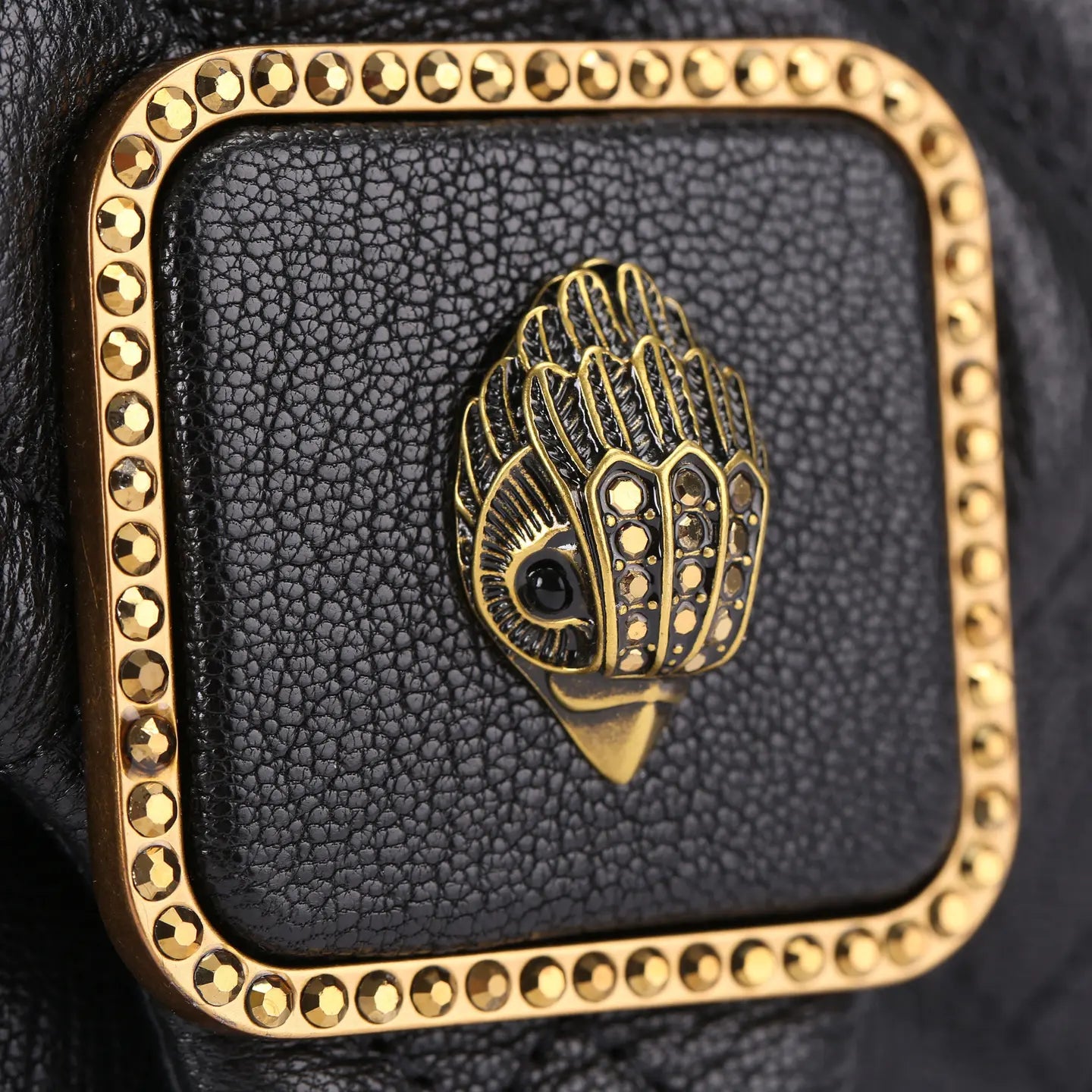 Αυτή η τσάντα Pimlico είναι κατασκευασμένη από απαλό μαύρο δέρμα με λεπτομέρειες overstitch. Υπάρχει μια μεγάλη μαύρη δερμάτινη πλάκα με αντίκες από ορείχαλκο και κεφάλι αετού στο κλείσιμο.