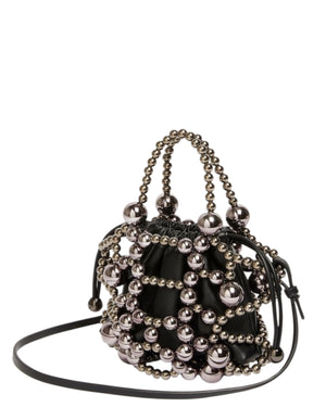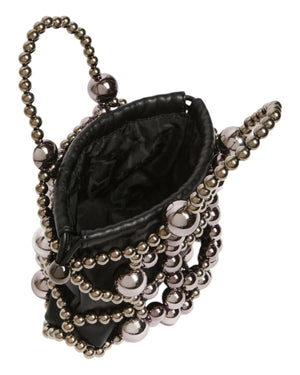 Μικρό σε μέγεθος αλλά και με μεγάλο στυλ: η νέα τσάντα-κουβάς είναι ένας συνδυασμός αξεσουάρ και κοσμήματος, με σφαίρες με μαργαριταρένιο φινίρισμα που δημιουργούν ένα εξωτερικό κλουβί. Το εσωτερικό περιλαμβάνει μια εύχρηστη θήκη για τα απαραίτητα.