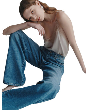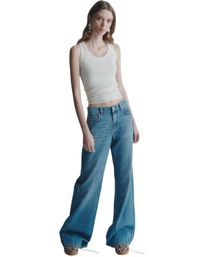 Αστική διάθεση με μια εκλεπτυσμένη πινελιά: το νέο χαμηλοκάβαλο τζιν με φαρδιά μπατζάκια και κλασικό σχέδιο με πέντε τσέπες. Αυτό το must-have της μητροπολιτικής γκαρνταρόμπας είναι ιδανικό για κάθε περίσταση.