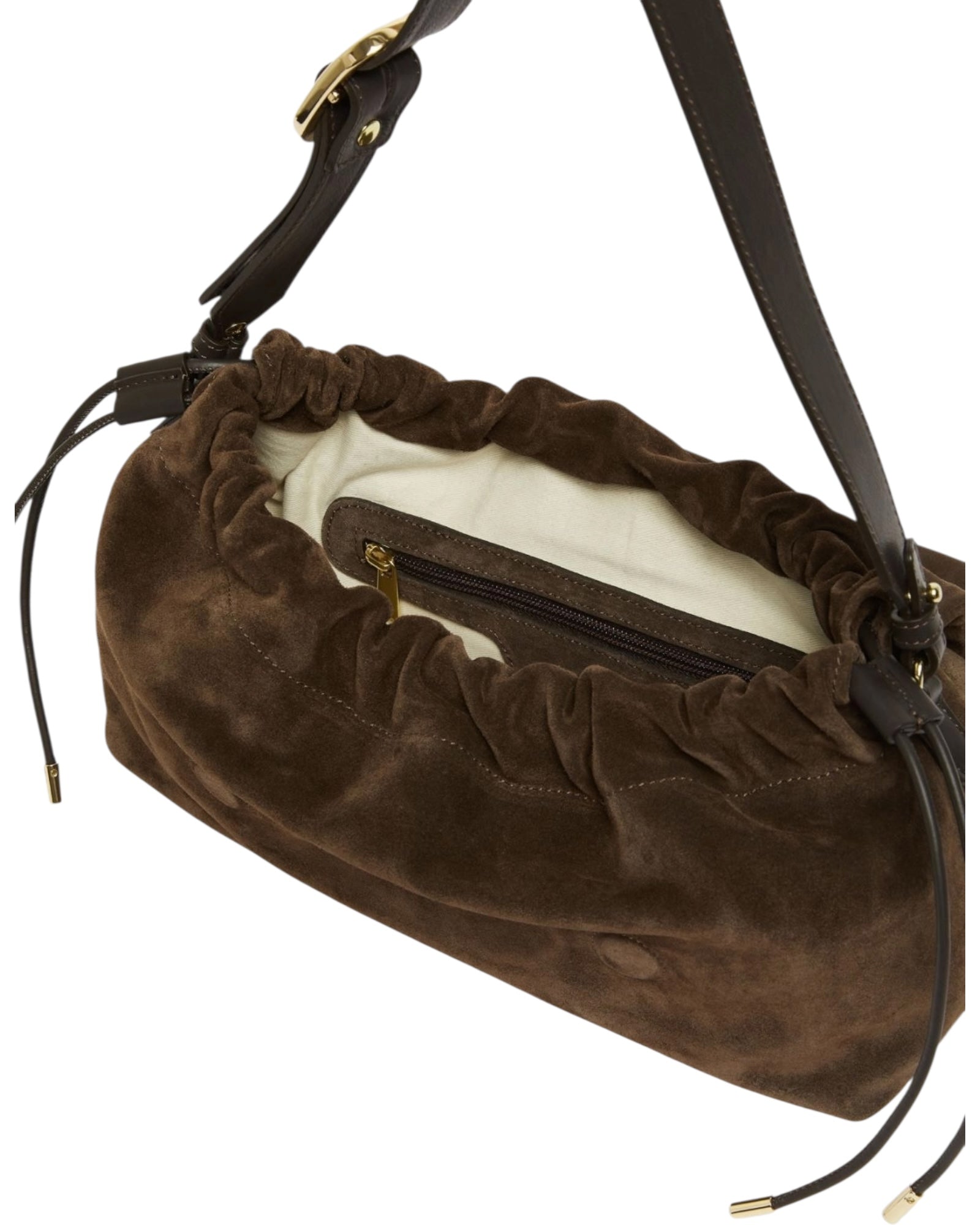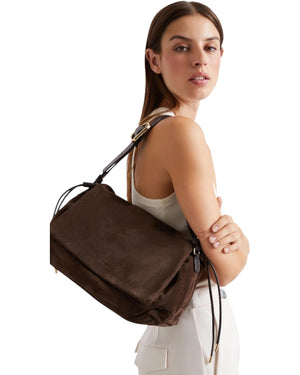 Η ευρυχωρία συμβαδίζει με την ευελιξία σε αυτή την τσάντα από σουέτ χωρίς δομές. Η λεπτομέρεια με κορδόνι περίσφιξης στα πλάγια προσθέτει την κατάλληλη δόση ανεπίσημης αισθητικής. Για την πόλη, τη δουλειά ή τον ελεύθερο χρόνο.
