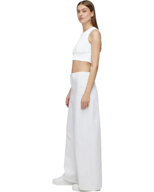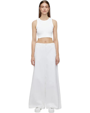 Το BROAD είναι ένα casual παντελόνι Marlene. Η χαλαρή εφαρμογή φοριέται χαμηλά στη μέση. Διαθέτει πλαϊνές τσέπες και φαρδύ πόδι. Ο βαμβακερός καμβάς έχει ανάγλυφη επιφάνεια και είναι ευχάριστο στην αφή.