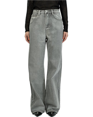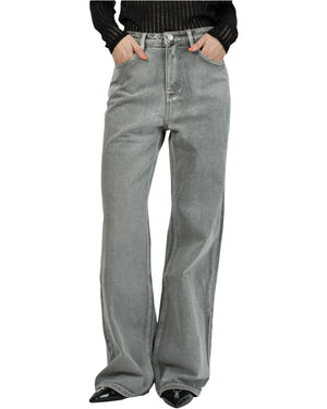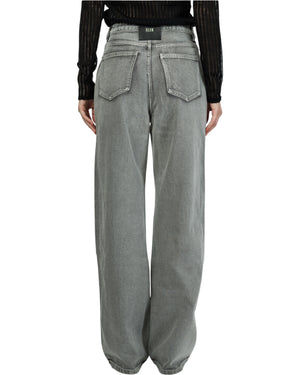 Το τζιν από τη συλλογή φθινόπωρο/χειμώνας της Eleh διαθέτει φαρδύ σχέδιο στο μπατζάκι και μεσαίο-ψηλό μπούστο με θηλιές για ζώνη, ένα διαφορετικό patch της μάρκας στο πίσω μέρος, μεταλλικό κουμπί και κρυφό φερμουάρ. Στυλ με πέντε τσέπες.