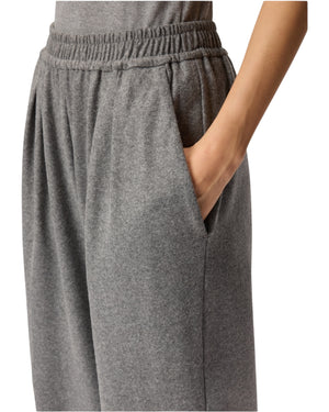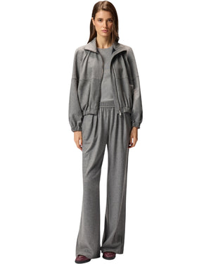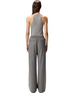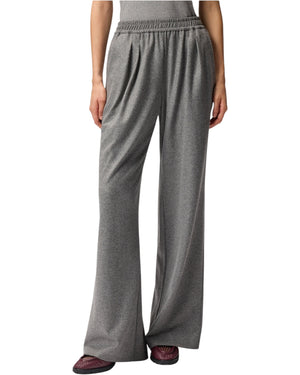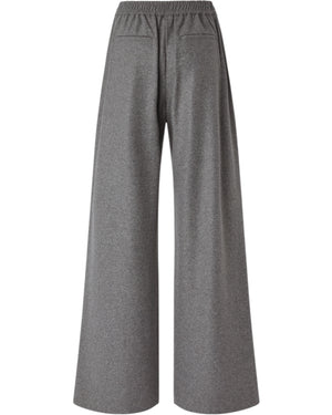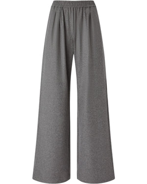 Μακρύ παντελόνι από φανέλα ζέρσεϊ με βαμμένο μαλλί —ένα ύφασμα που συνδυάζει απαλότητα, ελαστικότητα και άνεση στην εντέλεια— με φαρδιά μπατζάκια που φαρδαίνουν στο κάτω μέρος. Αυτό το ρούχο είναι άνετο και λειτουργικό χάρη στην ελαστική μέση και προσφέρει μια πινελιά στο tailored στυλ με τις διακριτικές πτυχώσεις στο μπροστινό μέρος και τις διακριτικές τσέπες με ρέλι στο πίσω μέρος. Αυτό το φαρδύ παντελόνι είναι ένα νέο must-have στυλ για επίσημες και κομψές εμφανίσεις, τόσο σε σπαστά ρούχα όσο και σε φρέσκες εκδοχές του κλασικού κοστουμιού.