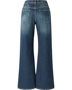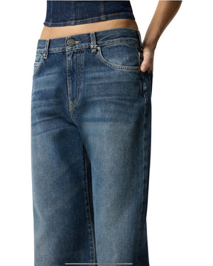 Πεντάτσεπο γυναικείο τζιν σε γραμμή wide-leg με ίσια και φαρδιά μπατζάκια, κατασκευασμένο από μαλακό denim από βαμβάκι και lyocell για πιο μαλακή υφή, με επεξεργασία stone wash. Αυτό το τζιν με το αυθεντικό στυλ της PINKO είναι διακοσμημένο με κεντημένο λογότυπο του brand πίσω στη μέση και με το λογότυπο Love Birds κεντημένο στη δεξιά πίσω τσέπη καθώς και με ένα αφαιρούμενο μεταλλικό στοιχείο στο θηλάκι με το λογότυπο Love Birds. Παίξτε με τους συνδυασμούς και φορέστε το χαμηλά στη μέση με χαμηλό καβάλο για πιο ανδρόγυνο στυλ ή συνδυάστε το με πιο θηλυκά κομμάτια για μια εμφάνιση βασισμένη στις αντιθέσεις. Θηλάκια για ζώνη και κλείσιμο μπροστά με κουμπί και κρυφό φερμουάρ. Το παντελόνι έχει ελαφρώς πιο φαρδιά εφαρμογή σε σχέση με το συνηθισμένο μέγεθος.