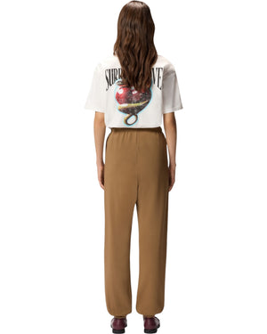 Παντελόνι σε γραμμή jogger από βαμβακερό ύφασμα βαμμένο με old όψη. Το κεντημένο λογότυπο Love Birds στο μπροστινό μέρος προσδίδει μοναδικότητα στο παντελόνι με το αυθεντικό στυλ της PINKO, ενώ η ελαστική μέση και το τελείωμα στα μπατζάκια, μαζί με τις τσέπες, εξασφαλίζουν άνεση και πρακτικότητα. Μαζί με τη μπλούζα με κουκούλα από το ίδιο ύφασμα, αυτό το παντελόνι jogging δημιουργεί μια άνετη φόρμα, απαραίτητη για το καθημερινό σας ντύσιμο τη νέα σεζόν.