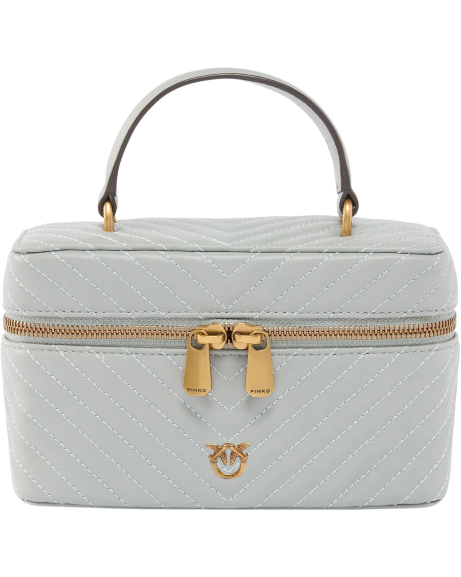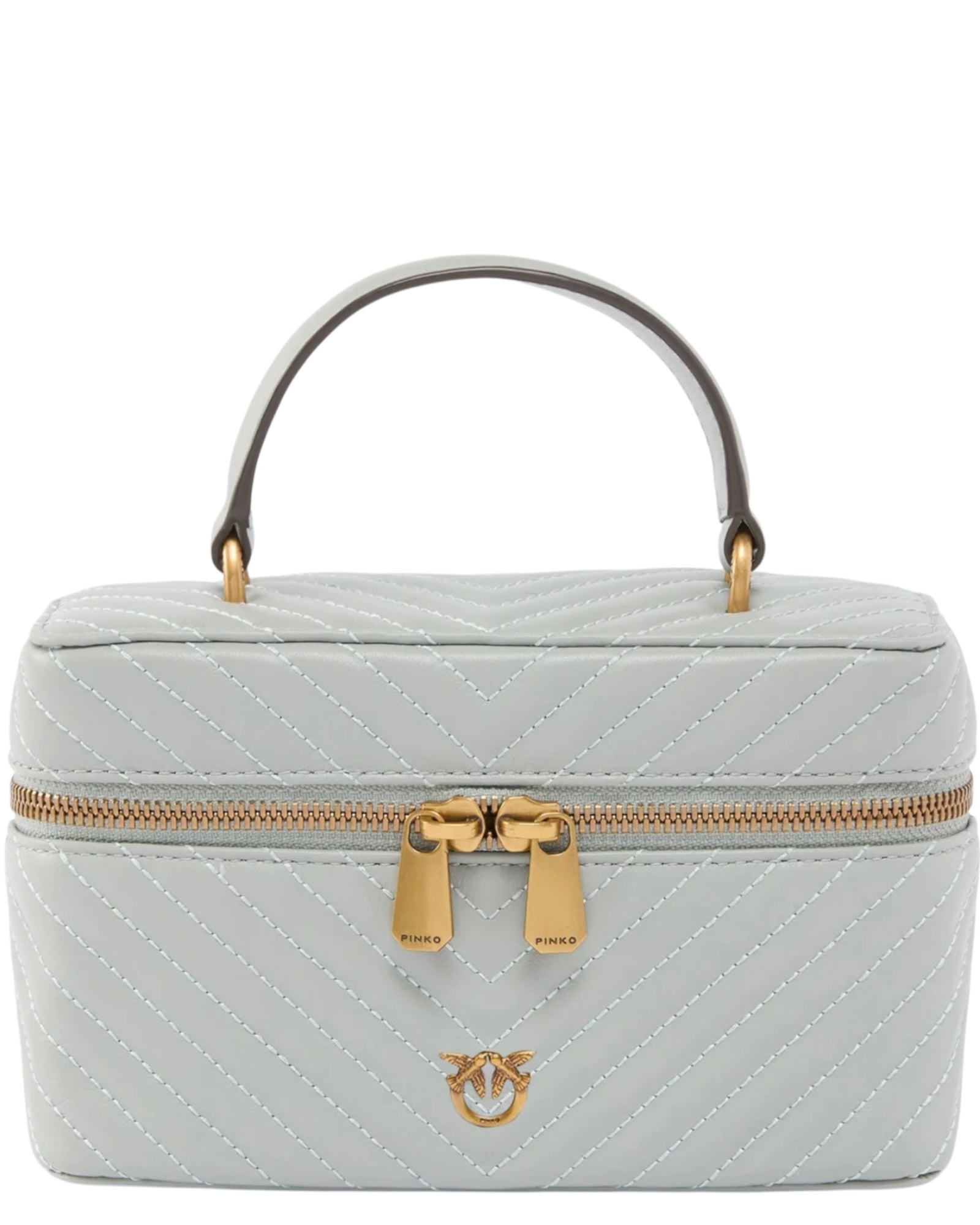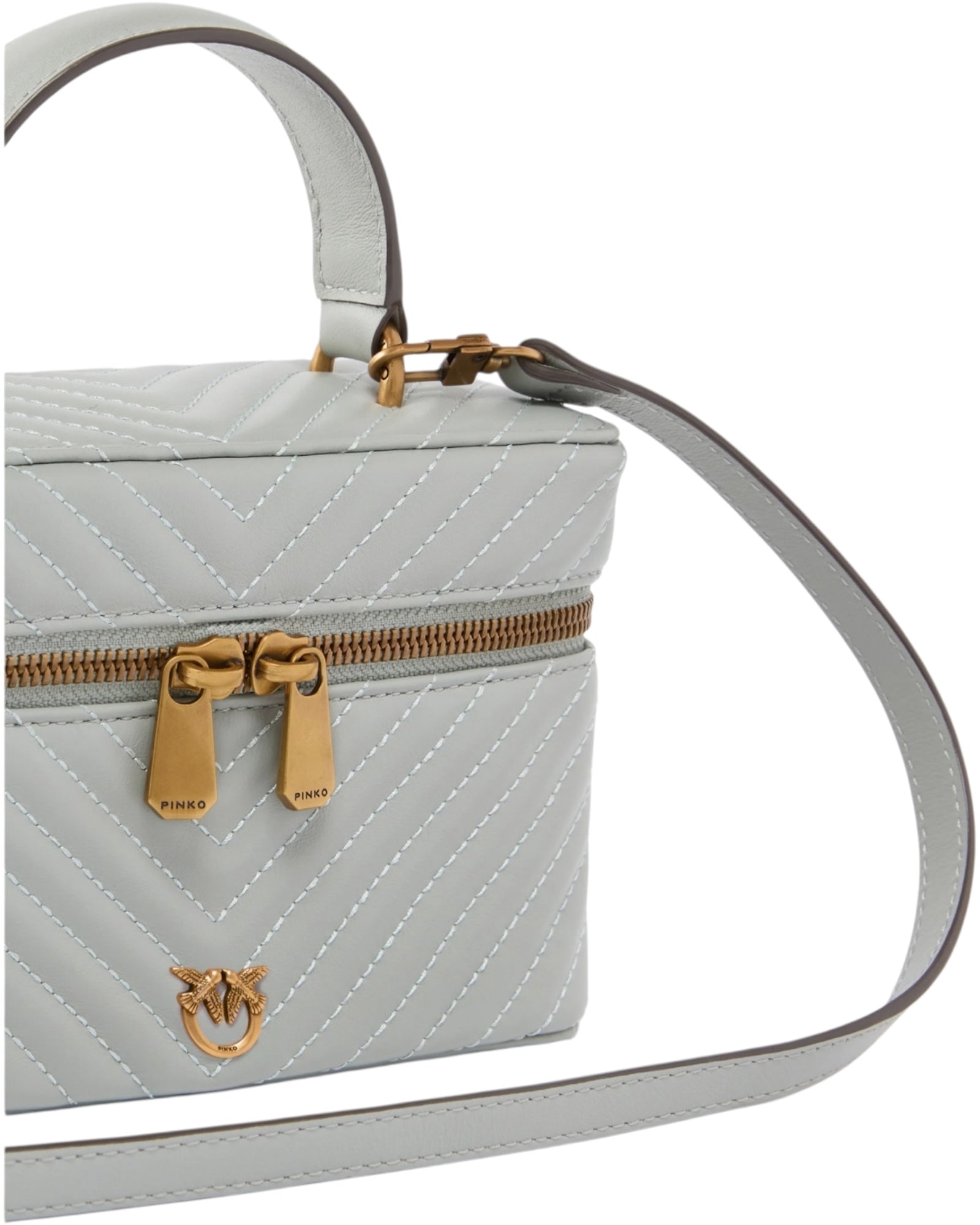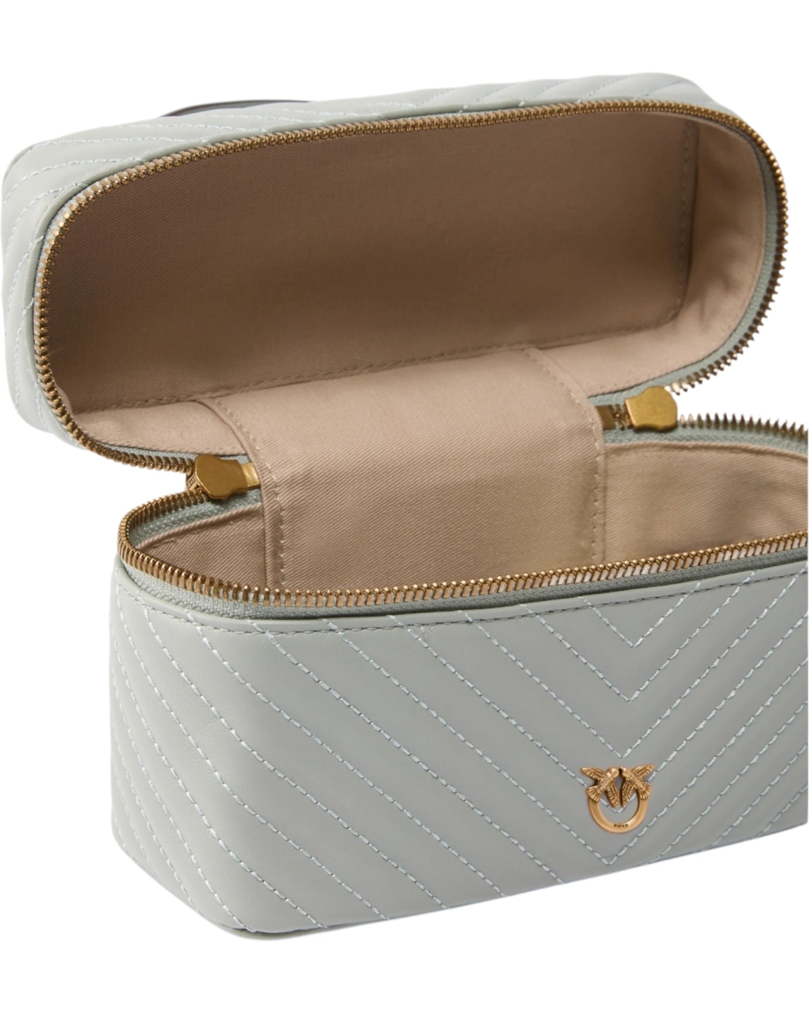 Μικρό νεσεσέρ με συμπαγές σχεδιασμό από μαλακό δέρμα nappa με καπιτονέ σχέδιο ζιγκ-ζαγκ, με ασορτί, αφαιρούμενο λουρί και ένα χερούλι στο επάνω μέρος, που προσφέρουν τρεις διαφορετικούς τρόπους μεταφοράς σαν μια κανονική τσάντα: στον ώμο, χιαστί και στο χέρι. Διακοσμημένο με το μοναδικό εμβληματικό μεταλλικό λογότυπο Love Birds Diamond Cut μπροστά, διαθέτει ένα περιμετρικό κλείσιμο με φερμουάρ διπλής κατεύθυνσης, ενώ το ευρύχωρο εσωτερικό είναι φοδραρισμένο με βαμβακερό ντρίλι. Το νεσεσέρ είναι το ιδανικό αξεσουάρ για τα ταξίδια, πρακτικό και glam ταυτόχρονα, για να έχετε πάντα μαζί σας όλα τα απαραίτητα καλλυντικά σας. Ενεργοποιήστε το αξεσουάρ σας PINKO: επαληθεύστε τη γνησιότητα του προϊόντος σας και αποκτήστε πρόσβαση στην εξατομικευμένη εμπειρία πλησιάζοντας το smartphone σας στο κέντημα Love Birds στην πίσω πλευρά!