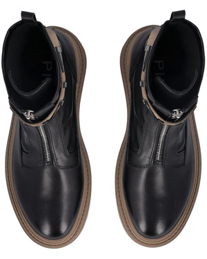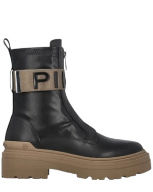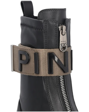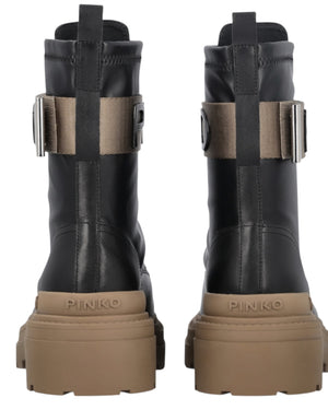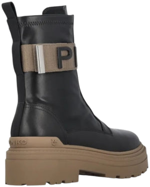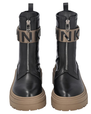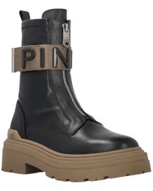 Δερμάτινα μποτάκια με σόλα από καουτσούκ με πλατφόρμα, δερμάτινη επένδυση, φερμουάρ μπροστά και λάστιχο στο πίσω μέρος για να τα φοράτε πιο εύκολα. Η τελική πινελιά δίνεται από την τεχνική κορδέλα με το λογότυπο PINKO. Μοντέρνες και ευέλικτες, αυτές οι μπότες μάχης είναι ιδανικές για μια casual και τολμηρή εμφάνιση. Ύψος σόλας με πλατφόρμα: 5,5 cm.