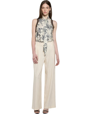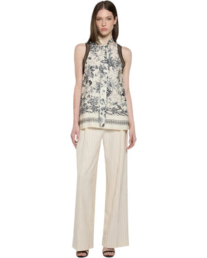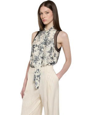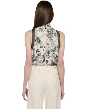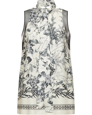 Τοπ σε στάμπα απο μελάνι λουλουδιών με αποσπώμενο κασκόλ και ένθετα οργάντζα στις μασχάλες.