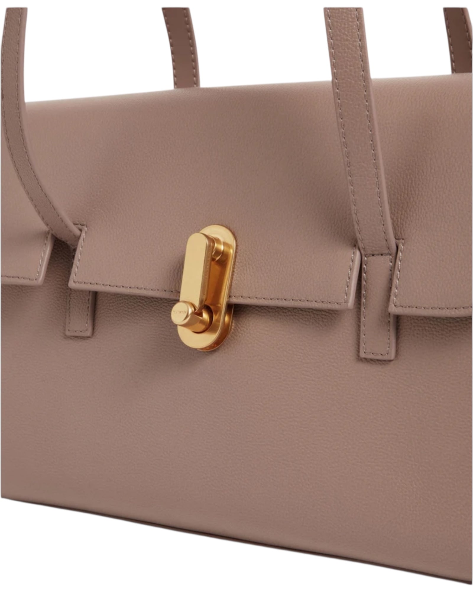Μια δερμάτινη τσάντα ώμου, με ασφαλές κλείσιμο με περιστρεφόμενο κούμπωμα και απαλή βαμβακερή επένδυση. Σχεδιασμένη για να ταιριάζει στην ημέρα σας με στυλ και πρακτικότητα, είναι έτοιμη για όπου κι αν σας πάνε τα σχέδιά σας.