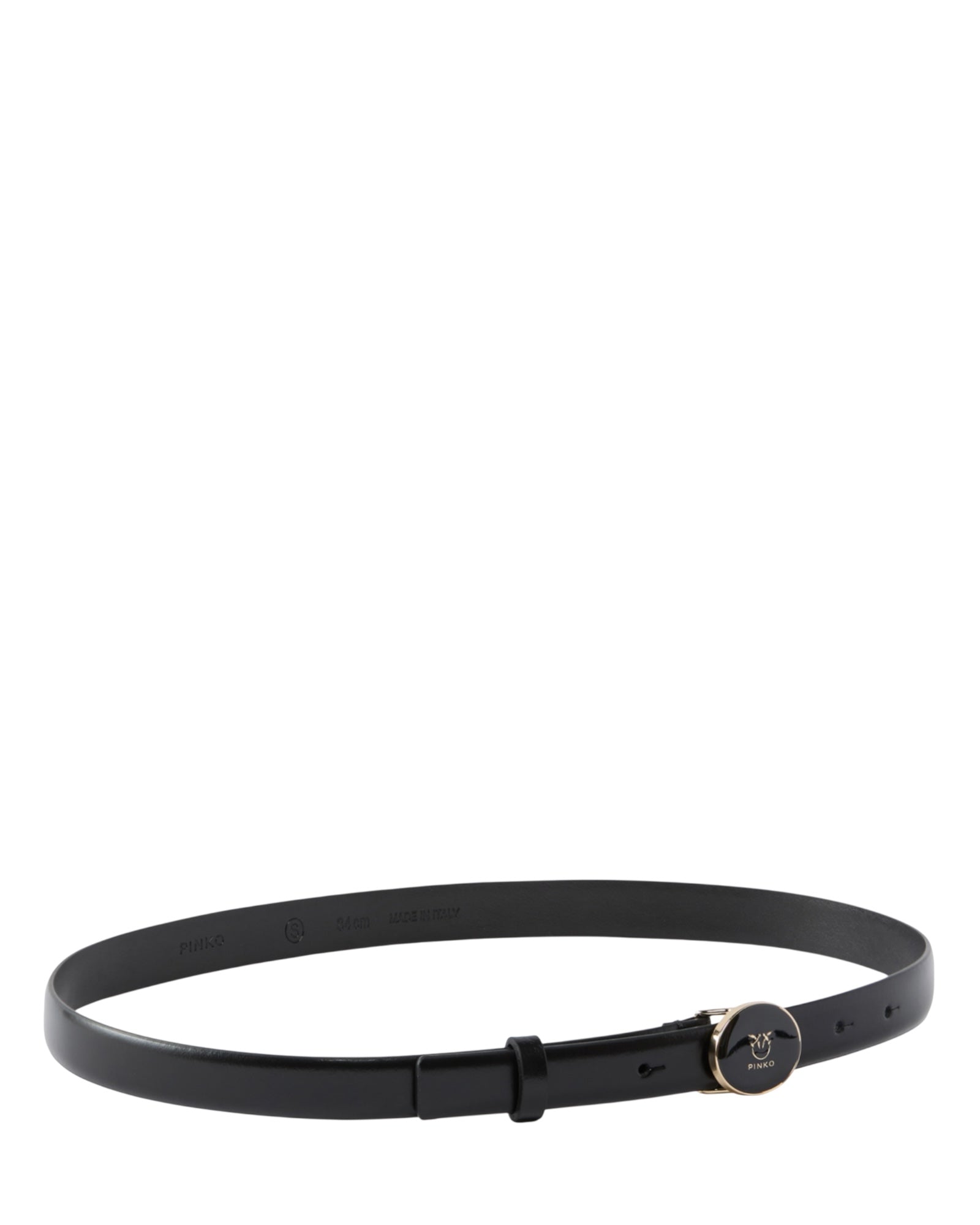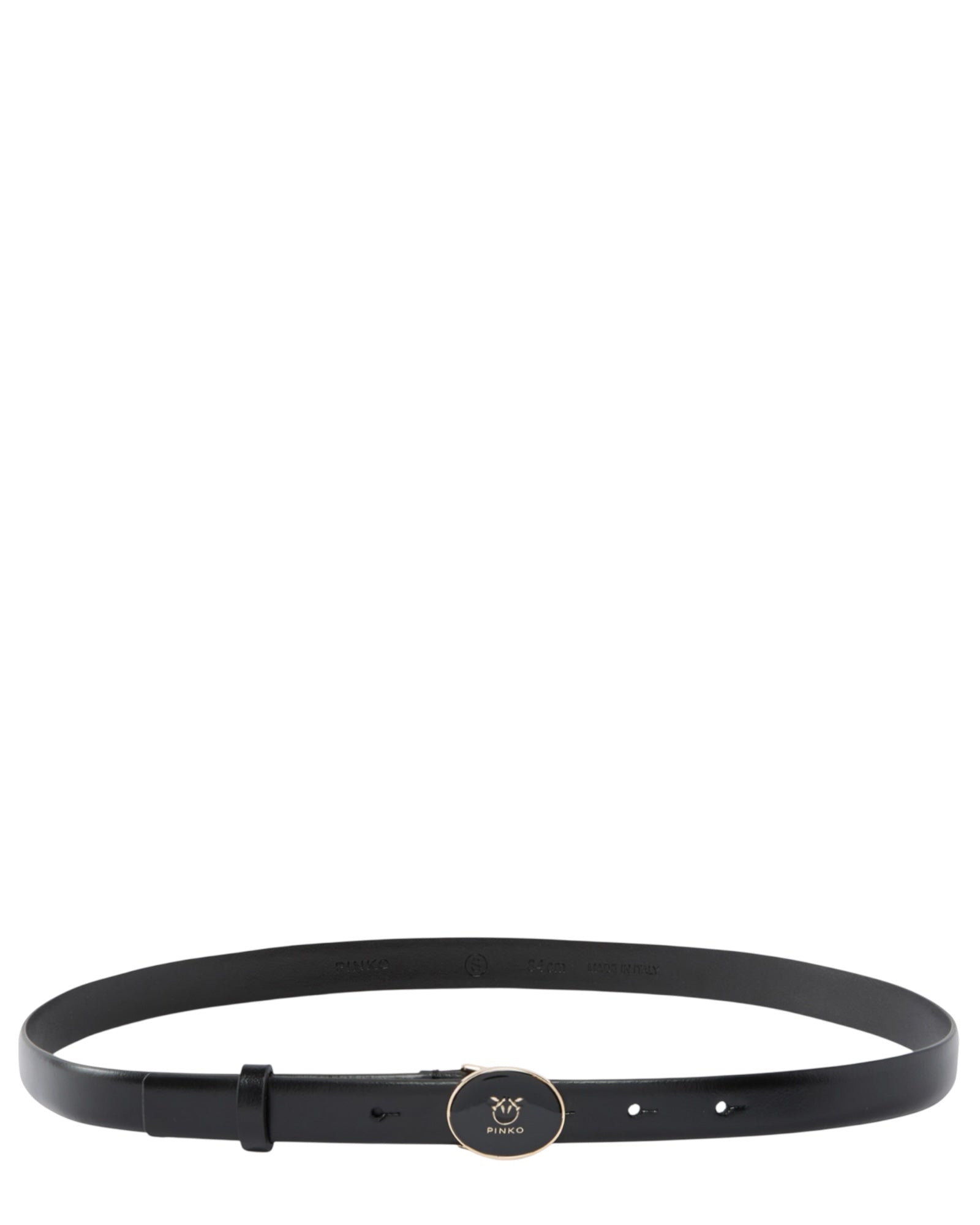 Ζώνη πλάτους 2,8 cm από μαλακό δέρμα. Το ιδιαίτερο χαρακτηριστικό αυτής της ζώνης είναι αναμφίβολα η οβάλ, επισμαλτωμένη αγκράφα σε στυλ πλακέτας με το λογότυπο PINKO και το λογότυπο Love Birds. Το εσωτερικό είναι κατασκευασμένο εν μέρει από υλικό που προέρχεται από αναγεννημένες ίνες δέρματος. Απλό και εκλεπτυσμένο, αυτό το αξεσουάρ είναι το κομμάτι που θα ολοκληρώσει τις καθημερινές σας εμφανίσεις και όχι μόνο.