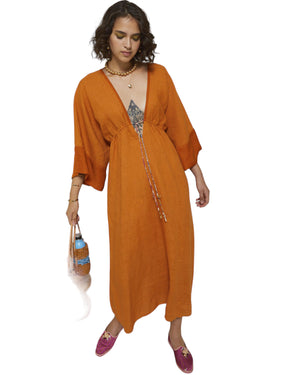 Φόρεμα Maxi λινό με άνοιγμα