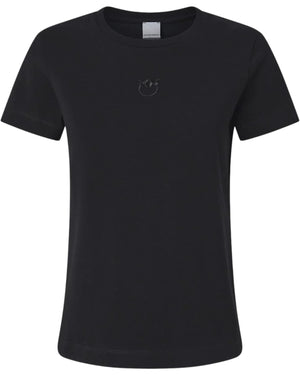 Γυναικείο κοντομάνικο μπλουζάκι από βαμβακερό ζέρσεϊ με εφέ παλιομοδίτικου wash και κεντημένο λογότυπο Love Birds στο μπροστινό μέρος. Αυτό το μπλουζάκι είναι ένα πραγματικό κομμάτι για όλες τις χρήσεις με το αυθεντικό στυλ PINKO. Είναι ιδανικό για κάθε περίσταση, από επίσημη έως πιο σπορ, προσδίδοντας μια εμβληματική, θηλυκή πινελιά.