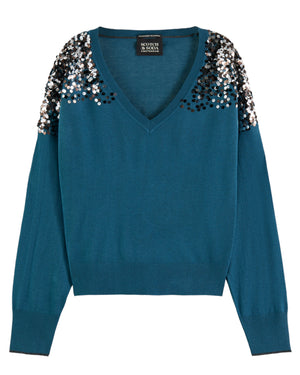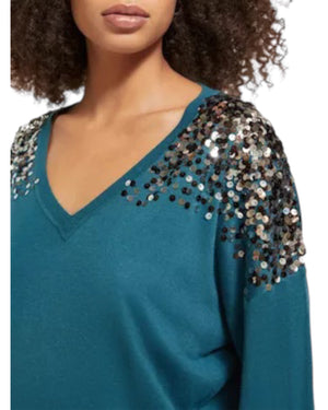 Πουλόβερ με V λαιμόκοψη και πούλιες